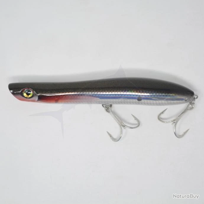 Leurre de surface polyvalent, parfaitement équilibré et conçu pour des lancers à longue distance (il ne saute pas à la récupération mais reste au contraire bien stable, comme collé à la surface).